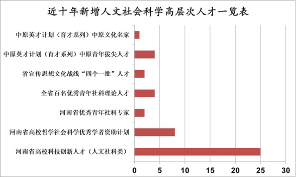 以重大項(xiàng)目為紐帶,加強(qiáng)優(yōu)勢(shì)資源整合,堅(jiān)持“人才-團(tuán)隊(duì)-平臺(tái)”建設(shè)三位一體,設(shè)立杰出青年、高層次人才、創(chuàng)新團(tuán)隊(duì)等培育專項(xiàng)項(xiàng)目,分類分梯次篩選重點(diǎn)人才和團(tuán)隊(duì)培育對(duì)象,形成“層次清晰、梯次成長(zhǎng)、特長(zhǎng)發(fā)展”的校-省兩級(jí)人才團(tuán)隊(duì)培育建設(shè)體系。累計(jì)培育各類人才50余人,獲中原文化名家1人、中原青年拔尖人才6人,省“四個(gè)一批”人才、省高校科技創(chuàng)新人才、省高校哲社優(yōu)秀學(xué)者等省部級(jí)人才42人,焦作市青年社科專家等地廳級(jí)人才稱號(hào)39人;培育校級(jí)創(chuàng)新團(tuán)隊(duì)10個(gè),獲批省高校哲學(xué)社會(huì)科學(xué)創(chuàng)新團(tuán)隊(duì)10個(gè),位居全省高校前列。