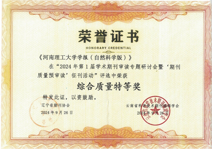一年來,《河南理工大學學報》兩刊綜合質量和辦刊影響力持續提升。《自然科學版學報》被評為“RCCSE中國核心學術期刊(A)”,在全國215種工程與技術綜合類學術期刊中排名第37位,創歷史新高。在《中國應用型期刊評價研究報告(2023版)》中,《自然科學版學報》被評為中國應用型權威期刊,在全國同類期刊中排名第二。《中國學術期刊影響因子年報(2024版)》顯示,《自然科學版學報》影響因子為1.958,比上年提高了15.4%;《社會科學版學報》2024年影響因子為0.888,比上年提高了73.8%。學術精要數據庫發布的2024年度高影響力論文,《自然科學版學報》共有43篇論文入選,《社會科學版學報》共有22篇入選。《自然科學版學報》因新媒體工作成績突出,榮獲2024年度中國煤炭行業知識服務平臺“數字化優秀期刊”榮譽稱號。以上數據和榮譽彰顯了我校學術期刊高質量發展的成效。