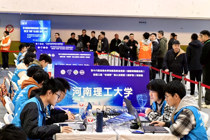 本網(wǎng)訊(通訊員 張月)3月16日,第十八屆全國大學(xué)生信息安全競賽(創(chuàng)新實踐能力賽)暨第二屆“長城杯”鐵人三項賽(防護賽)陜西賽區(qū)半決賽在西安郵電大學(xué)成功舉辦。軟件學(xué)院兩支隊伍晉級參賽,與來自各高校的100支隊伍同場競技。經(jīng)過8小時高強度攻防對抗(AWDP)和綜合滲透(ISW)環(huán)節(jié)比拼,軟件學(xué)院網(wǎng)絡(luò)空間安全專業(yè)2023級本科生單文迪、張凱清、李廣浩、高聚鑫組成的隊伍斬獲了賽區(qū)一等獎,