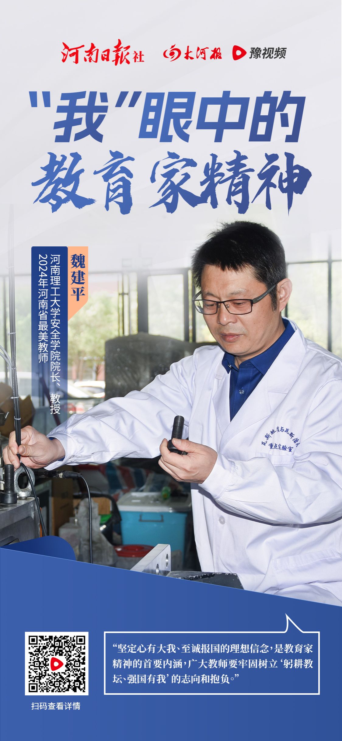 不論是當普通老師還是學院院長,幾十年來,魏建平始終把學生當孩子一樣看待。“教書育人是教師的天職,對學生要有仁愛之心、對得起學生。”這是他對于獲評“2024年河南省最美教師”這個榮譽最樸素真摯的理解。
