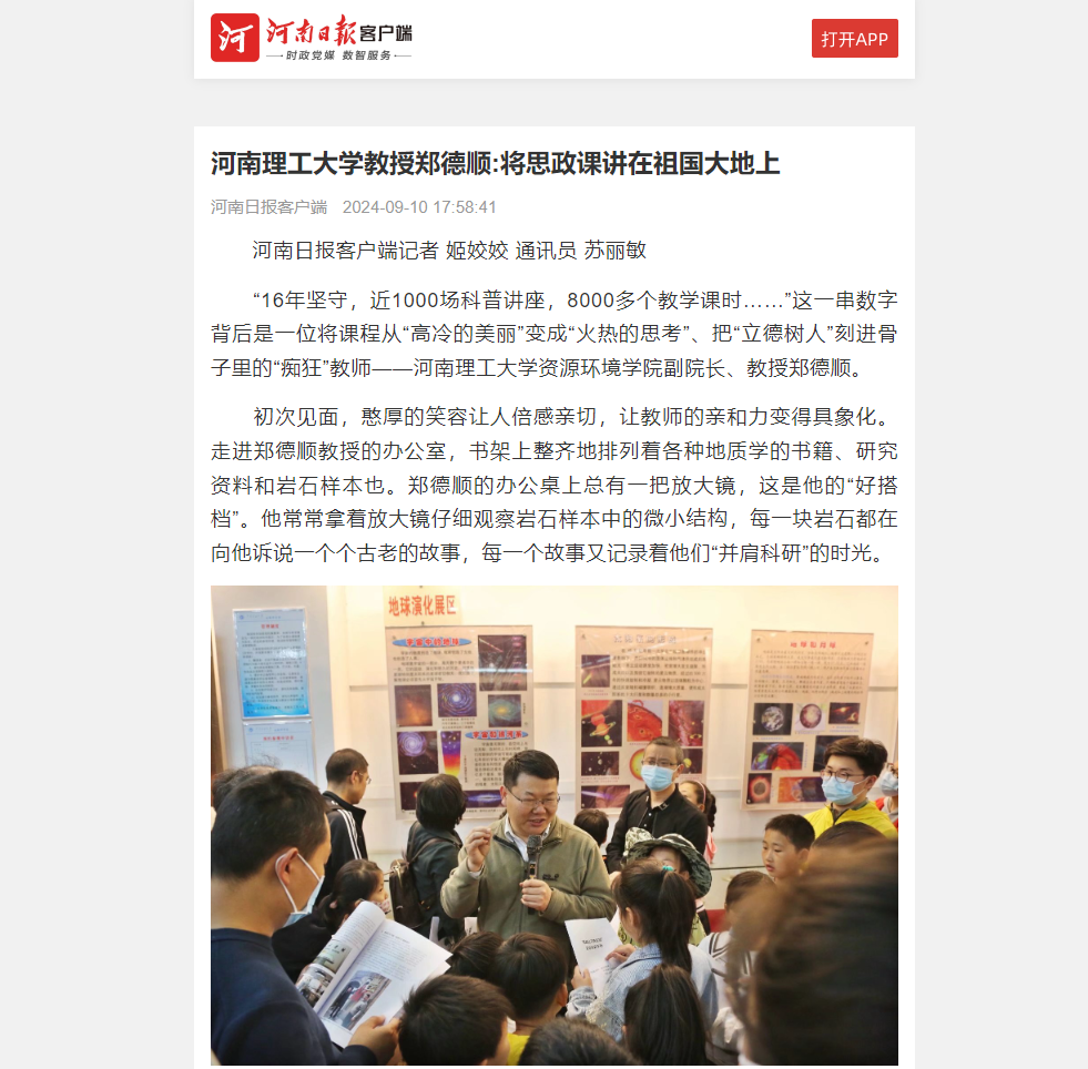 河南理工大學教授鄭德順:將思政課講在祖國大地上
