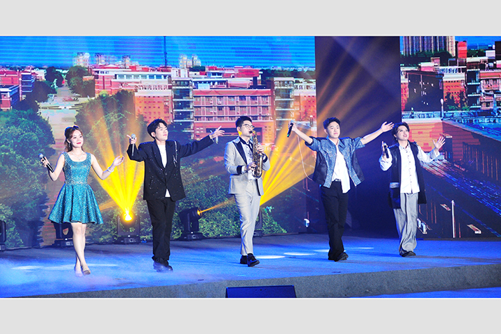 演出以恢弘大氣的《花開新時代》序曲開篇,從“歲月留聲”“壯麗河山”“家國情懷”等方面生動展現了學校百十五載櫛風沐雨,與中原大地根脈相融,與偉大祖國休戚與共的壯麗篇章。歌舞《我乘著風飛過來》熱情洋溢,來自五湖四海的校友們紛紛送上對母校的深情祝福。歌曲《多想對你說》情深意長,訴說著對實現中華民族偉大復興的中國夢的美好憧憬。古箏重奏《盛世弦韻》婉轉悠揚,與流光溢彩的畫面相得益彰,呈現出一場韻味深遠的視聽盛宴。歌曲聯唱《校園的早晨》《曾經的你》《叫你一聲媽媽》《離別開出花》回憶滿滿,校友們輕聲吟唱,與在校師生一同重溫校園美好時光。舞蹈《光》展現教師提燈引路、育夢成光的教育理念和樂教愛生、甘于奉獻的仁愛之心。歌曲《故鄉的目光》感情真摯,一幕一幕畢業照勾起了校友們心中最溫暖的回憶。太極拳《和諧太極》似行云流水,在力與美、靜與動之間,盡顯中華傳統文化的兼容并蓄。舞蹈《拉起黃河趕太陽》氣勢磅礴,表達黃河兒女立于天地之間,自強不息,艱苦奮斗,在民族復興的偉大征程中勇毅前行。情景朗誦《河南理工大學賦》字字鏗鏘,彰顯了學校百余年厚重的歷史積淀,與祖國風雨同行的滿腔赤誠。歌曲《點燃》激情澎湃,深情致敬人民教育家的高尚情懷,表達廣大教育工作者心有大我、至誠報國,點燃學生前行之路的深切情感。《黃河母親》《偉大的中國偉大的黨》高亢嘹亮,唱出了理工人與祖國同呼吸共命運的澄澈初心和以奮斗之姿投身強國建設的堅定決心。