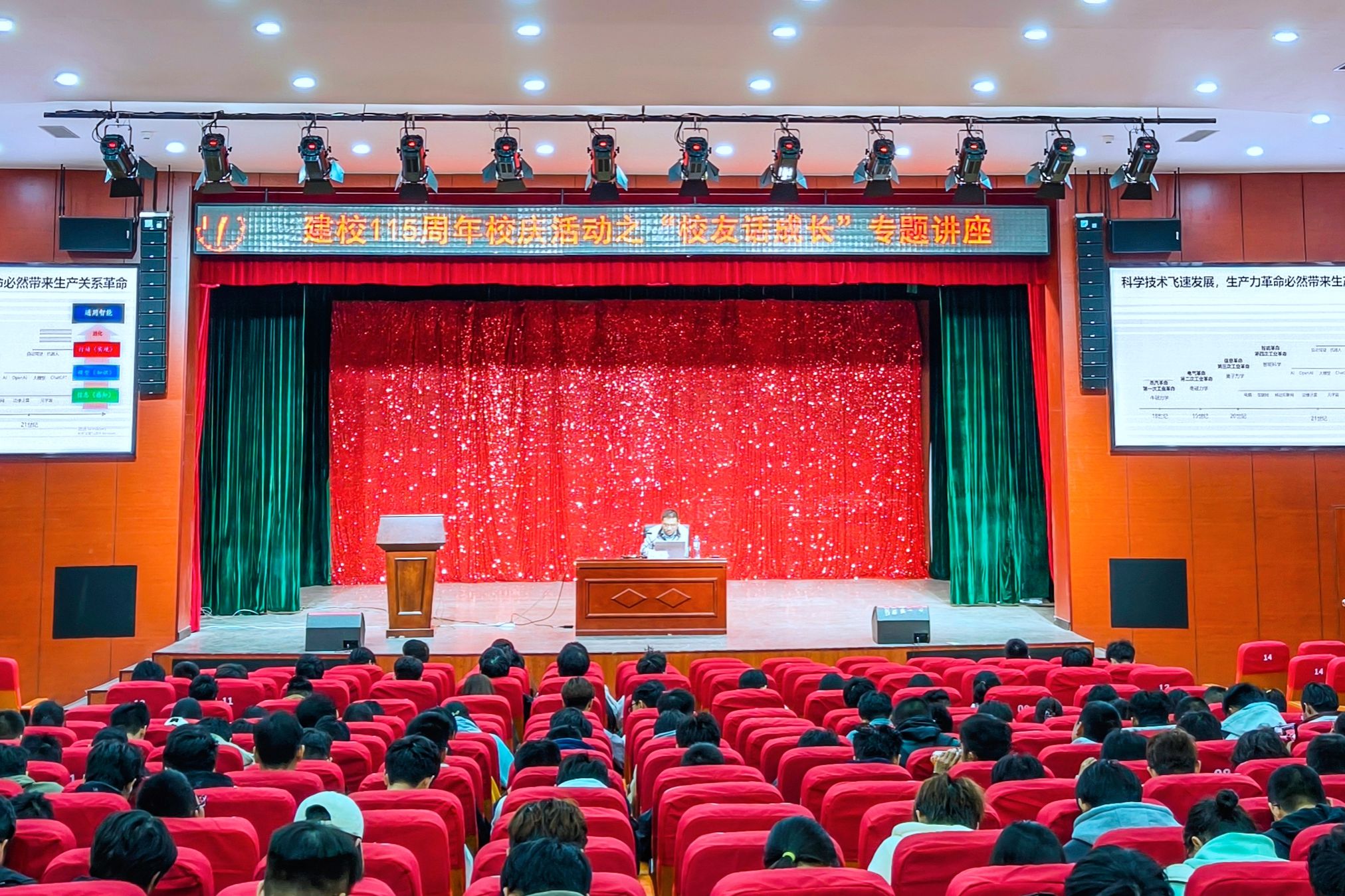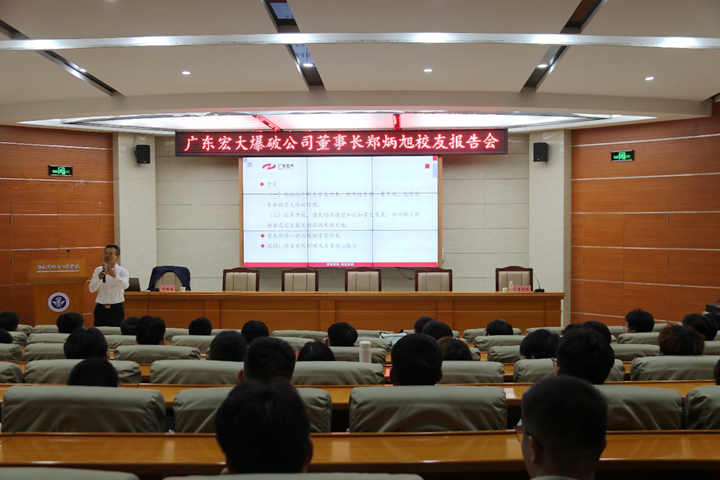10月18日,為慶祝學校115周年華誕,我校采煤專業80級校友、廣東校友會會長、廣東宏大控股集團股份有限公司董事長、廣東省軍工集團有限公司董事長鄭炳旭應邀在能源學院樓104學術報告廳為大學生做題為《從實踐看宏大戰略與文化》的主題報告。能源學院120余名本科生參加報告會,報告會由能源學院黨委書記李懷珍主持。